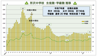 1971. 4. 1 所沢市立所沢第二中学校(現:向陽中)分離開校 2年生181名が転出