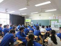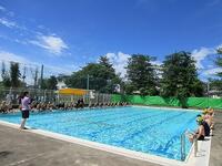 プールでは2年生男子の授業、8組(特別支援学級)ではAETの先生による英語の授業が行われていました。